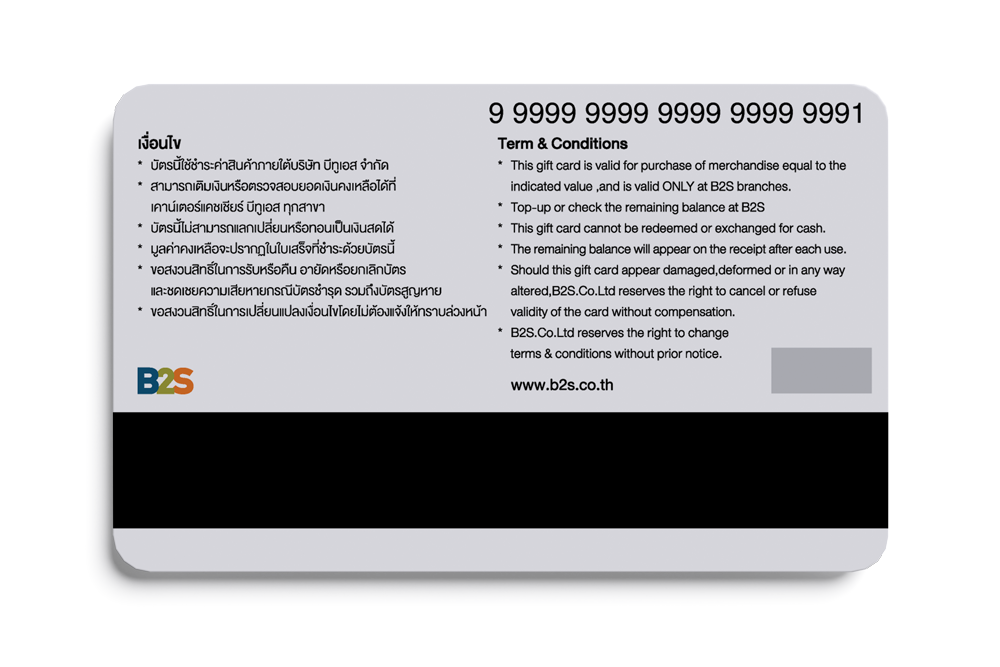 ยกระดับแบรนด์ของคุณด้วยบัตรของขวัญ (Gift Card) มาตรฐานระดับมืออาชีพ บัตรของขวัญคือทางเลือกที่เรียบง่ายแต่ทรงพลังสำหรับการมอบของขวัญในทุกโอกาส ไม่ว่าจะเป็นวันเกิด เทศกาลพิเศษ หรือการมอบสิทธิพิเศษให้ลูกค้าและพนักงาน บัตรของขวัญช่วยให้ผู้รับสามารถเลือกซื้อสินค้าและบริการได้ตามต้องการ เพิ่มความสะดวกสบายและประสบการณ์การใช้งานแบบเฉพาะตัว เราผลิต Gift Card มาตรฐานระดับสากล รองรับการใช้งานทั้งด้านการชำระเงินและสิทธิประโยชน์รูปแบบต่าง ๆ ด้วยเทคโนโลยีที่ตอบโจทย์ธุรกิจทุกรูปแบบ ไม่ว่าจะเป็นแบรนด์ค้าปลีก ร้านอาหาร บริการความงาม ไลฟ์สไตล์ หรือองค์กรที่ต้องการสร้างโปรแกรม Loyalty ไม่ว่าคุณต้องการผลิตบัตรเพื่อขายหน้าร้านหรือใช้เพื่อส่งเสริมการตลาด Plus Tech เราพร้อมให้บริการครบวงจร ตั้งแต่การออกแบบ ผลิต ไปจนถึงจัดส่ง มอบความคุ้มค่า และคุณภาพให้ทุกใบของคุณ คุณสมบัติทางเทคนิค ชิป ชิปแบบสัมผัสและแบบสองระบบ (Dual-interface) รองรับมาตรฐานอินเทอร์เฟซบัตรตามข้อกำหนด ISO 7816, ISO 14443 Type A/B และ ISO 18000 ระบบปฏิบัติการและแอปพลิเคชัน รองรับมาตรฐานและแอปพลิเคชันสำหรับเครือข่ายการเงินหลัก: Visa, Mastercard, JCB, UnionPay (China UnionPay) , AMEX และ TBCC รองรับทั้งระบบปฏิบัติการ Java และ Native OS แอปพลิเคชันสำหรับบัตรเดบิตและบัตรเครดิต ตัวเลือกการปรับแต่ง วัสดุ (Materials) บัตร rPVC บัตร PVC บัตรมีแกนโลหะ บัตรแบบโปร่งใส บัตรโฮโลแกรมโลหะ เทคนิค (Technique) การปั๊มฟอยล์ ขอบสี (มากถึง 20 สี) ขอบโค้ง กลิตเตอร์ คริสตัล น้ำหอม/กลิ่น การเคลือบผิวสัมผัส สีแกนกลางของบัตร สีเปลี่ยนตามอุณหภูมิ สีเปลี่ยนตามแสง เรืองแสงในที่มืด หมึกที่เปลี่ยนสีได้ตามมุมมอง คุณสมบัติป้องกันแบคทีเรีย การเคลือบเงาหรือด้านเฉพาะจุด การพิมพ์นูน หมึกขูดออก (Scratch-Off Ink) บรรจุภัณฑ์บัตร ซองจดหมายแบบกำหนดเอง กล่องหลากหลายรูปทรง กล่องพร้อมเอฟเฟกต์สามมิติ เอกสารแทรก บัตรของขวัญ (Gift Card) ภาพรวม คุณสมบัติทางเทคนิค ตัวเลือกการปรับแต่ง ย้อนกลับไป บัตรเติมเงิน (Top Up Card) ผลงานของเรา ผลิตภัณฑ์บัตรเติมเงินอื่น ๆ เราพร้อมนำเสนอโซลูชันบัตรเติมเงินที่หลากหลาย เพื่อตอบโจทย์ความต้องการเฉพาะของธุรกิจของคุณ อ่านเพิ่มเติม บัตรศูนย์อาหาร อ่านเพิ่มเติม